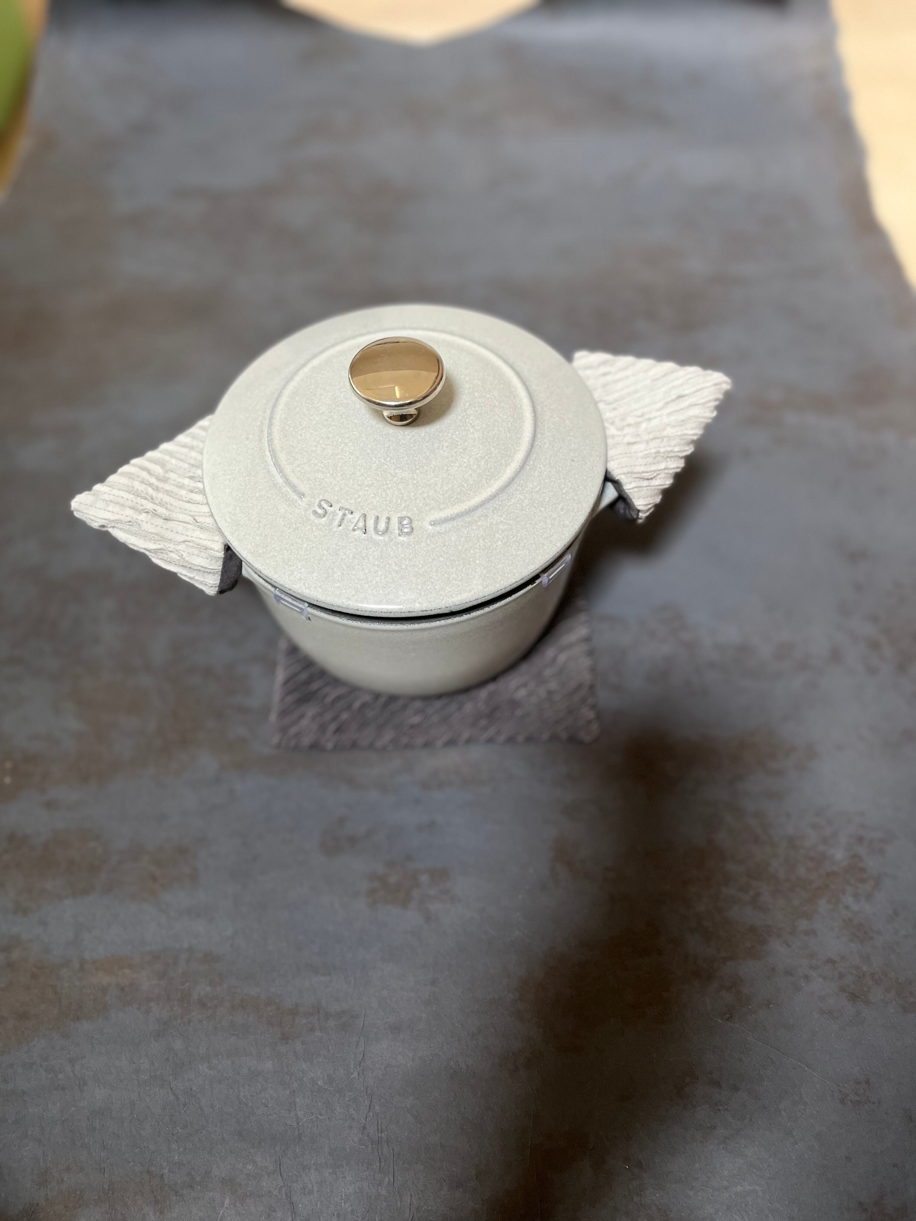 画像のお鍋はストウブ ラ・ココット de GOHAN2合炊きMサイズです。2つ合わせると鍋つかみにもなります。商品のサイズとお手持ちのお鍋のサイズをご確認ください。