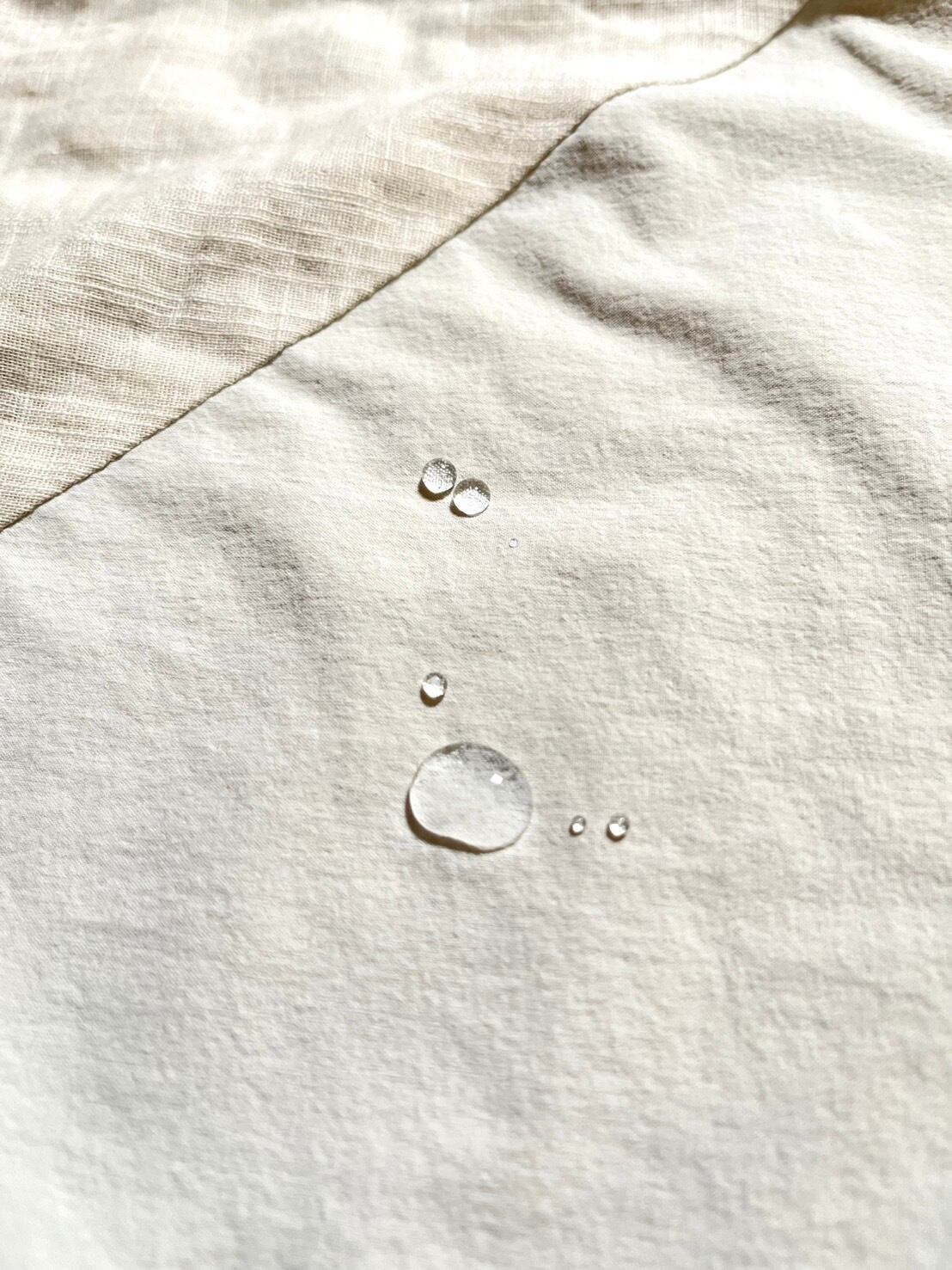 素材には、上質な肌触りの良いダブルガーゼに機能的な撥水加工を施した生地を使用しました。撥水生地は夏でも暑くならないよう切り替えをし、最小限に抑えています。二つのスナップで調節可能。毎日のケアや食事の時間を快適に過ごせる、心強いサポーターです。しずくバンダナと共に、笑顔あふれる毎日を送りましょう。