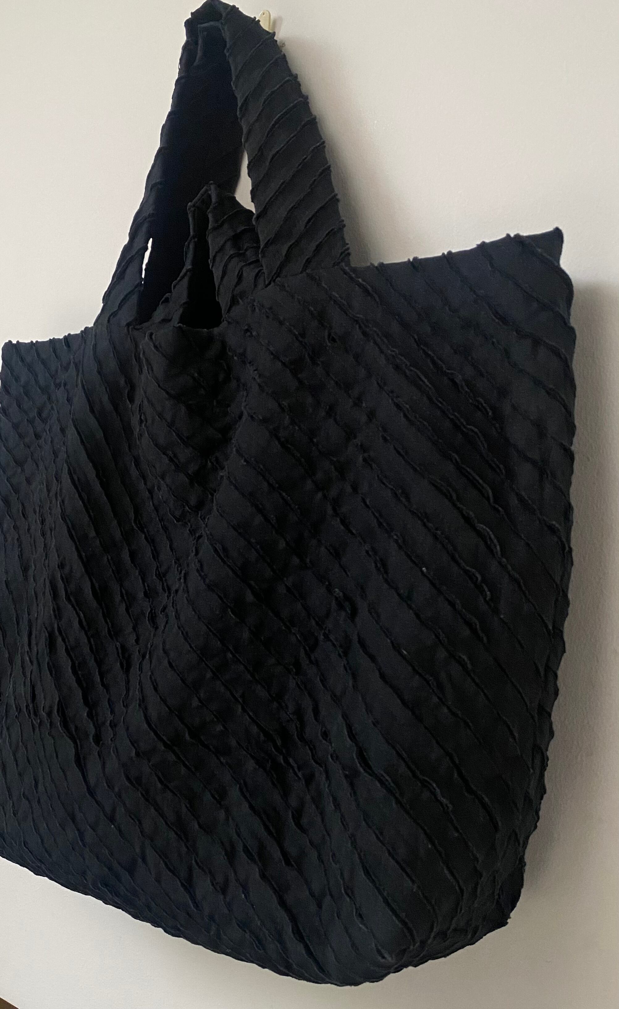 ハリコシしっかり高密度で味わいのある表情のコットンリネン生地で作ったスラッシュキルトバッグ。重ね合わせた生地により立体感が出て個性を与えています。使うほど、洗うたびに徐々にフェイド(色落ち)して味わいを深めていきます。